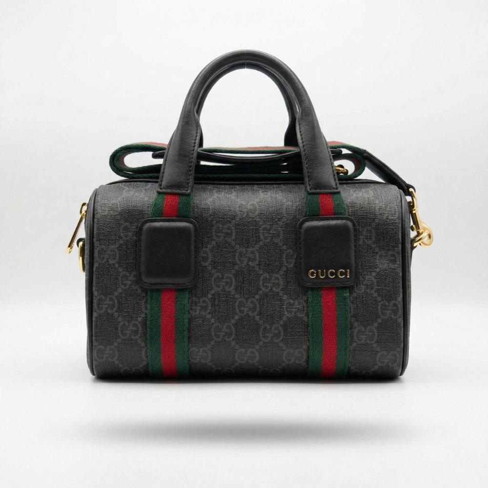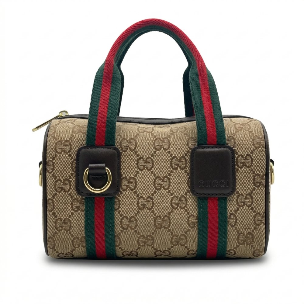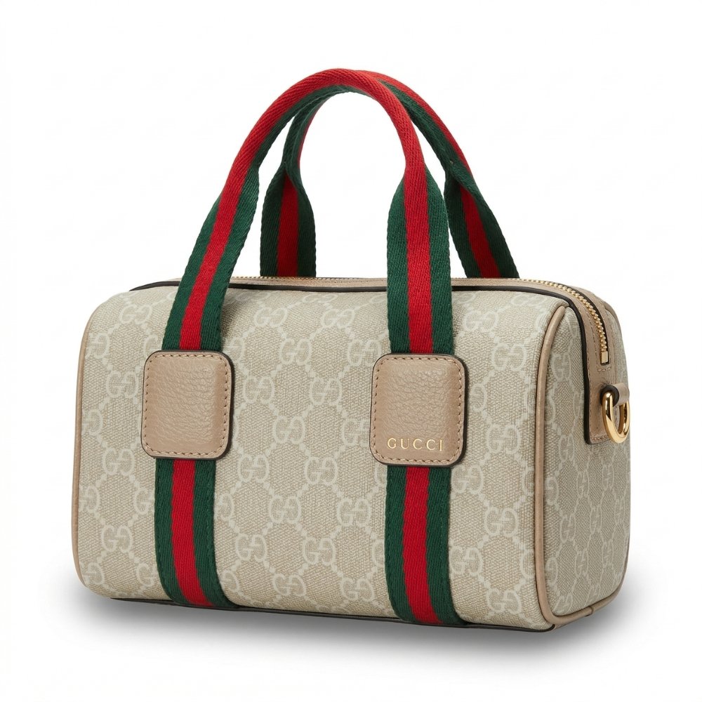 Embrace iconic sophistication with this heritage-inspired mini barrel handbag, featuring signature monogram canvas and distinctive striped webbing. Delivered with premium luxury packaging, it perfectly blends vintage charm with modern practicality for the discerning fashion enthusiast.