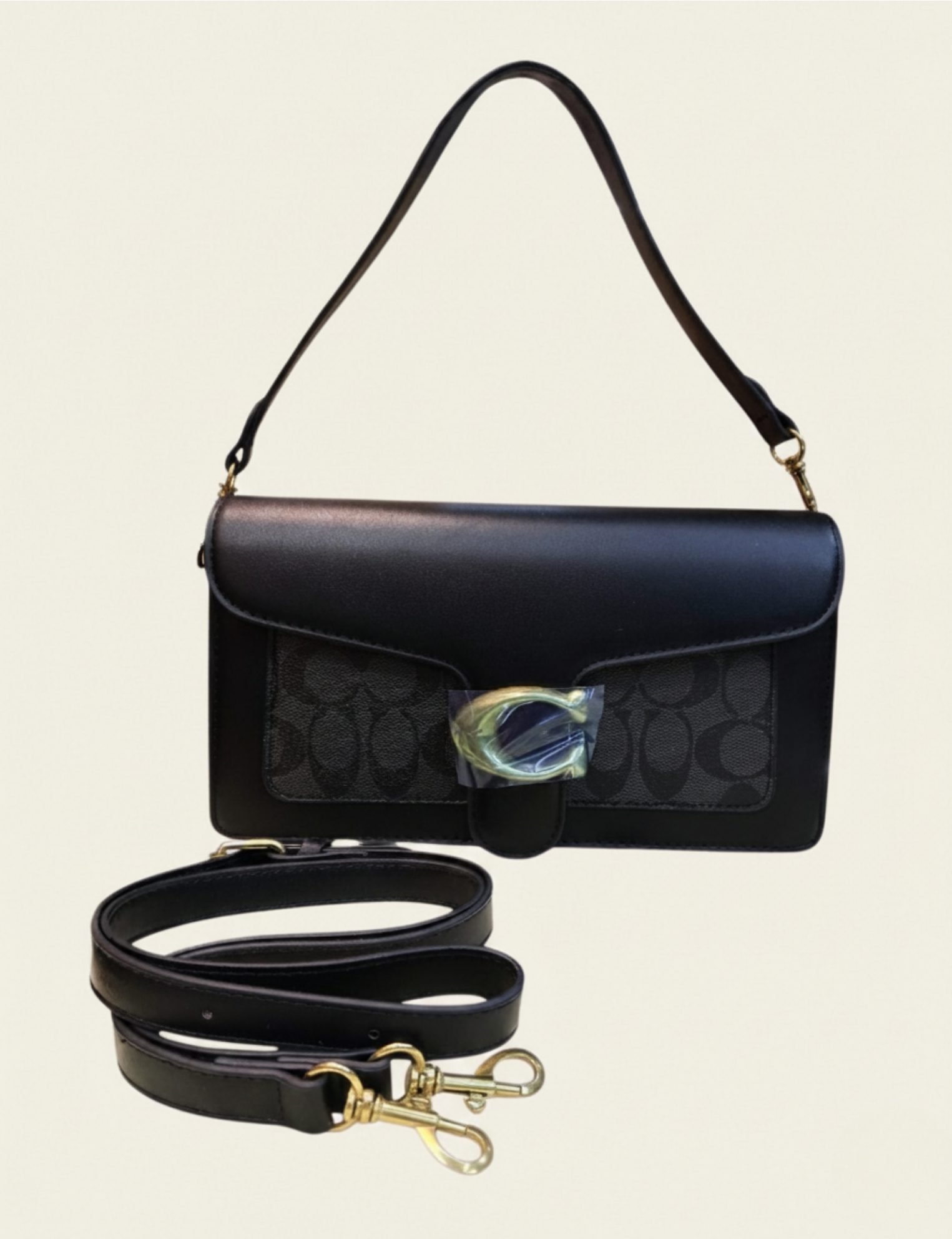 The ultimate convertible bag: the Signature C-Hardware Flap Shoulder Bag. Features genuine leather, iconic monogram canvas paneling, and a polished C-logo hardware closure. Includes two detachable straps for wear as a shoulder bag, crossbody, or clutch. Perfect sizing for essentials, offering premium organization and day-to-night versatility.