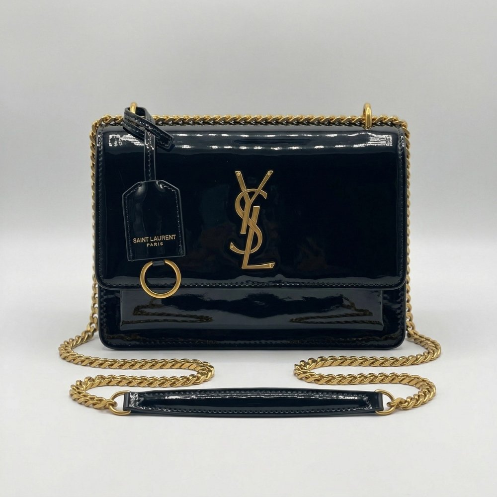 Discover the epitome of modern elegance with our latest addition to the luxury collection. This stunning accessory instantly transforms any outfit with its breathtakingly glossy finish and impeccable structural design. The timeless flap silhouette speaks volumes of your refined taste while remaining effortlessly chic. Exquisite golden hardware creates a striking contrast against the polished surface for maximum visual impact. Make a definitive fashion statement every time you step out with this luxury masterpiece.